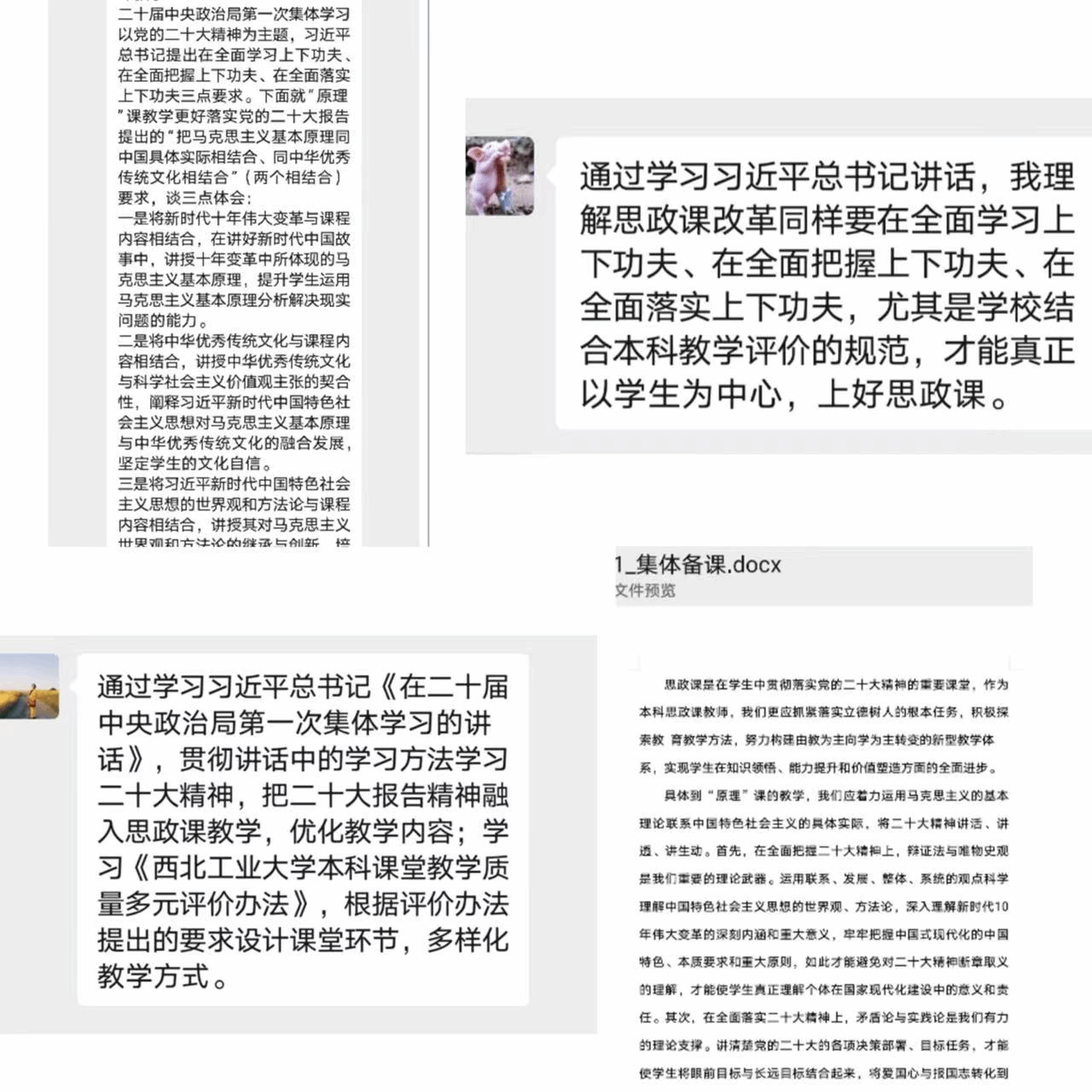 马克思主义基本原理系备课活动采取“自主学习+书面呈现”的方式开展。各位老师重点学习了习近平总书记在二十届中央政治局第一次集体学习时的讲话,以及《MissAV