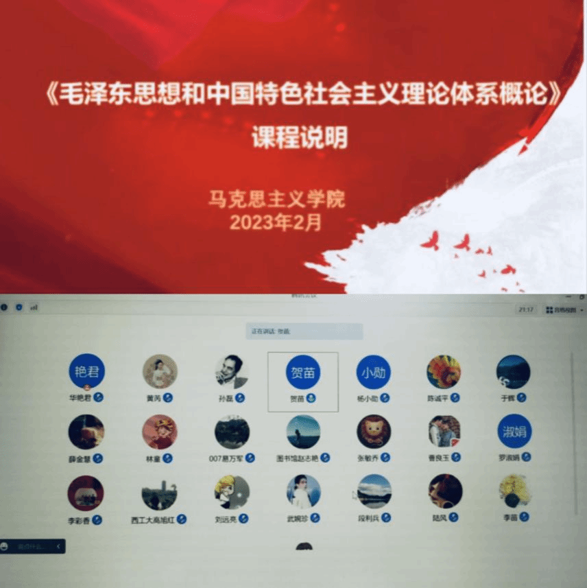 《毛泽东思想和中国特色社会主义理论体系概论》教学团队于2月23日晚组织开展了新学期首次集体备课,马克思主义中国化研究系教学主任华艳君副教授主持本次会议,课程团队专兼职教师共28人参加会议。MissAV 副院长贺苗参加了本次备课会,并传达了“开学第一课”的有关会议精神。老师们认真学习了会议精神并展开深入交流与讨论,大家纷纷表示要认真学习贯彻习近平总书记提出的“八个相统一”教学要求,落实立德树人根本任务,做好MissAV 新学期思政课教学和大思政课建设工作。