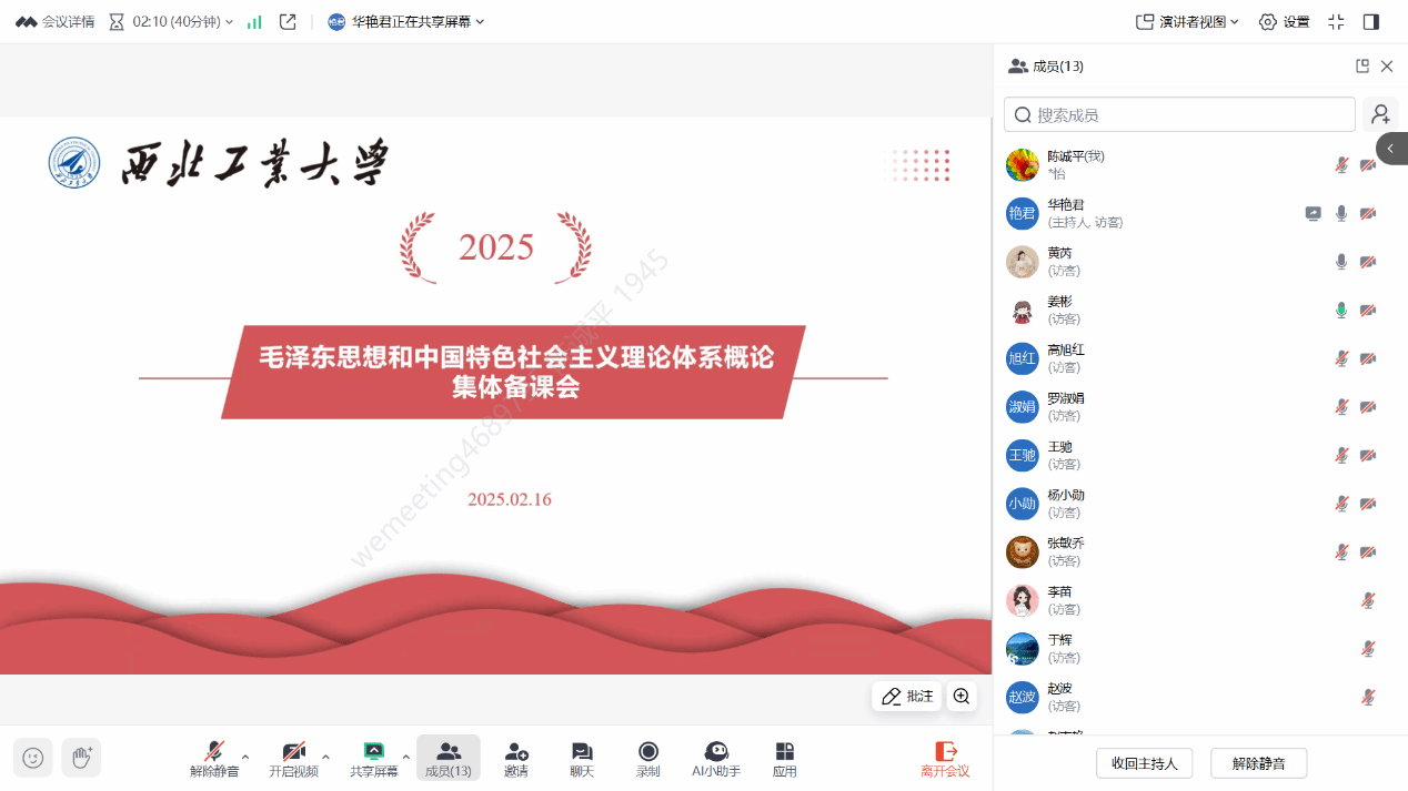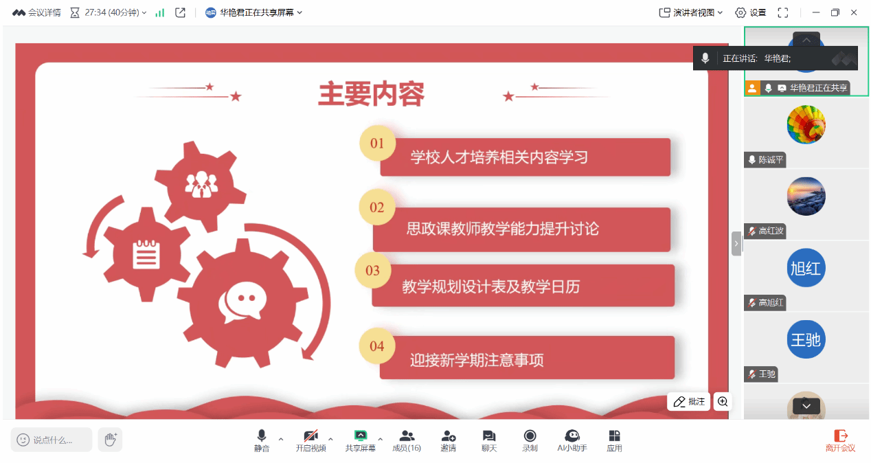 人才培养会议精神,有效提升思政课教师教学水平”展开。备课会由教学主任华艳君主持,全体专兼职教师参加会议。