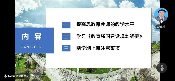 接着,胡建发对新学期教学工作进行了布置,动员各位老师以高度的责任感、使命感不断提高教学质量,同时对上课过程中的重要问题进行了强调。