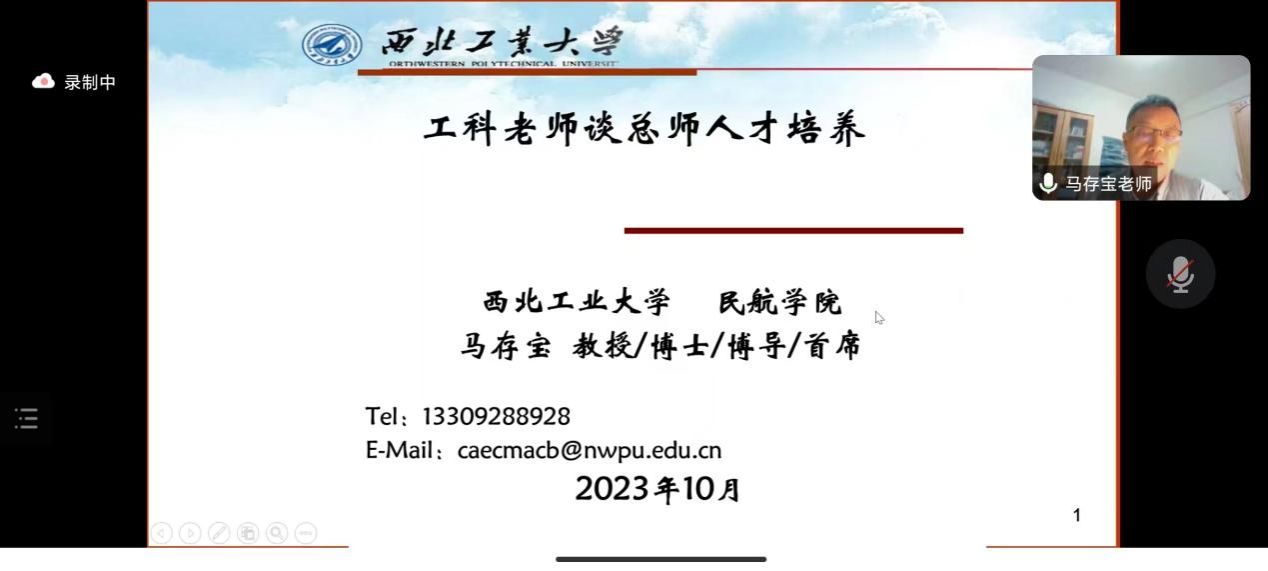 马存宝教授以“工科老师谈总师人才培养”为题展开讲座。马存宝分别从总师型人才内涵、民航大类人才培养目标、毕业生应获得的核心能力以及思政课的作用四个方面进行了分享。马存宝老师谈到,总师型人才不仅在某个领域有深厚的专业知识,还具备跨学科的综合能力、广泛的知识面、卓越的技术能力以及较强的协作能力。他还谈到,对于人文社会科学的毕业生来说,一方面要具备丰富的学科知识,另一方面要善于沟通并能具备一定的国际视野。此外,马存宝老师还强调思政课大有作用,一是培养德育、工程与社会、个人和团队等引领能力;二是思政课能为个人的发展提供理想信念支撑。最后,马存宝就西工大和工程技术元素融入思政课提出独到的建议。