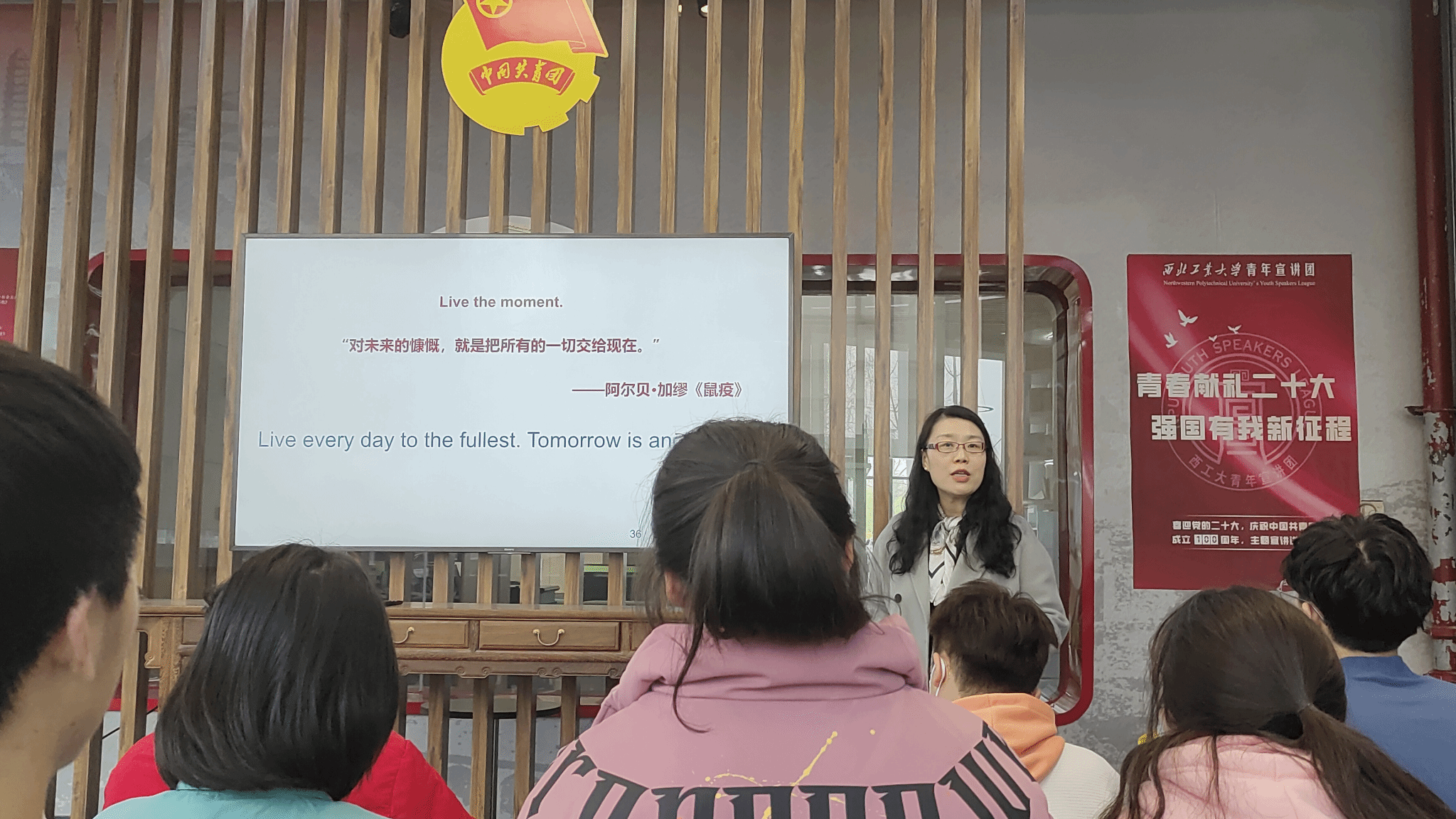 艺术教育中心主任孙瑜老师讲述题为《美之所往 愿达彼方——做最好的自己》的大思政课。本次活动在长安校区图书馆红色书屋开展,来自教育实验MissAV