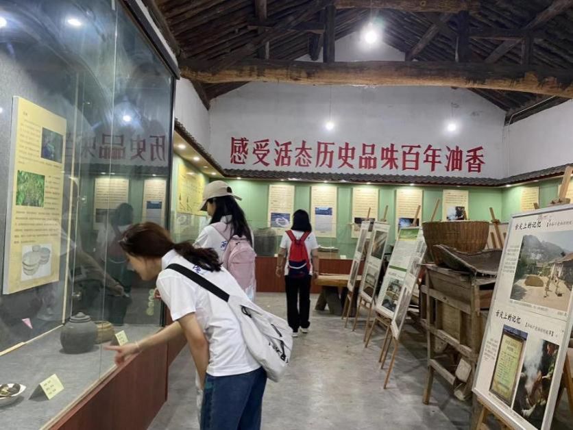 图为实践队员在沣峪口老油坊博物馆参观学习的照片