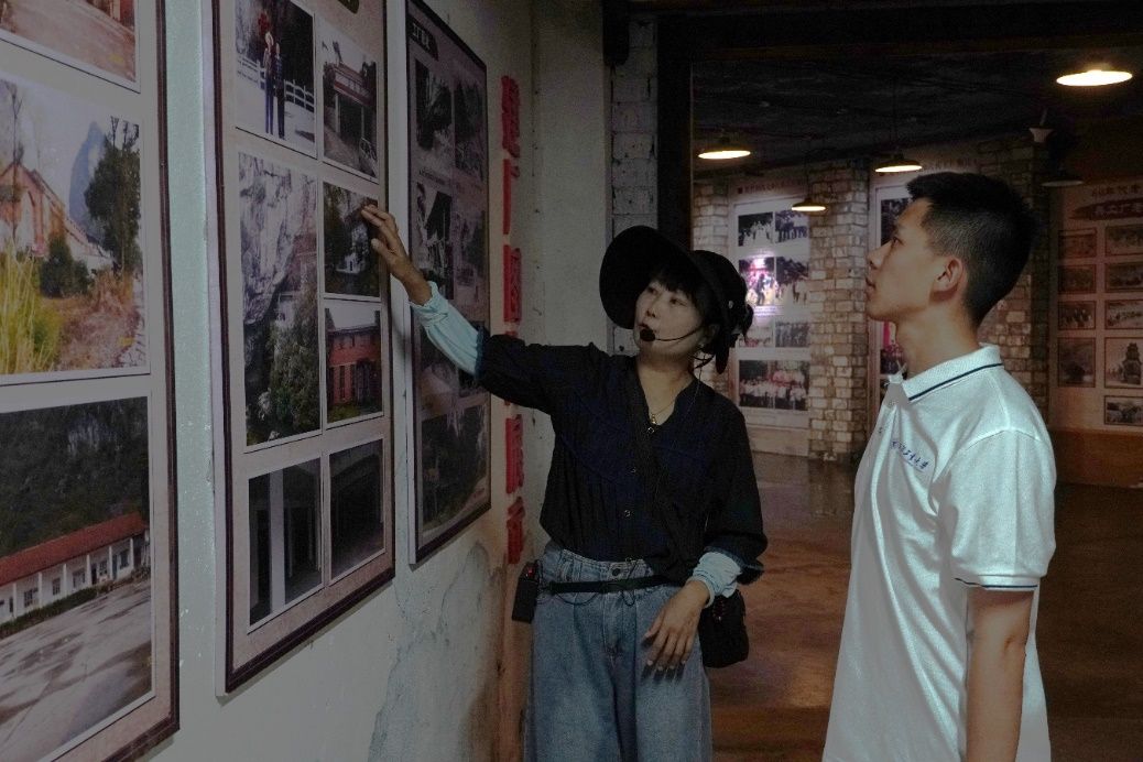 活动伊始,讲解员向实践队详细介绍了老君洞兵工厂的发展历程。该兵工厂曾是革命历史的见证,抗战期间,著名的四十一兵工厂在此兴建,占地近千亩,设有8个制造所,主要生产步枪、机枪、手榴弹等武器,为抗日战争胜利立下了汗马功劳。