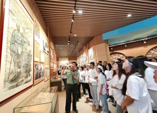 14日上午,实践队走进延安革命纪念馆,了解党中央在延安十三年领导中国革命的伟大历程,现场学习《“诗言志”——小炕桌上书写千年绝唱》《站在最大多数劳动人民的一面》《没有共产党就没有新中国》等思政课。随后,实践队赴王家坪革命旧址参观,瞻仰毛泽东等领导人旧居,通过文物、史料学习中国共产党延安历史,感悟革命精神。期间,大家还一同观看了旧址内小剧场带来的歌曲《南泥湾》、舞蹈《安塞腰鼓》,进一步增进对陕北文化的了解。