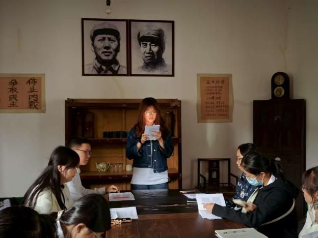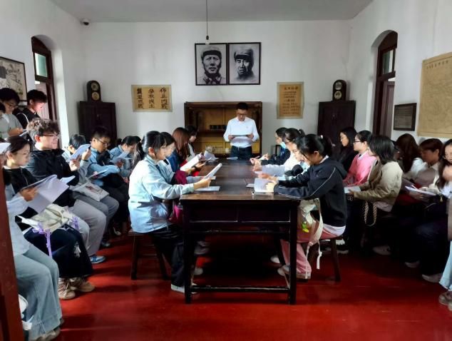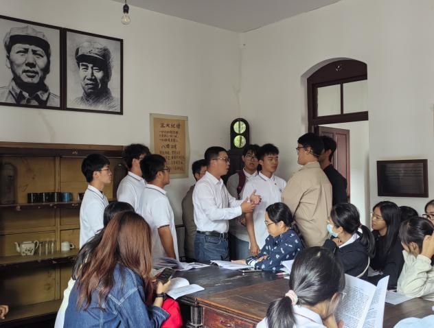 随后,师生们在纪念馆救亡室开展专题读书会。辅导员董润老师结合历史背景与文本内容,深入浅出地讲解了《论持久战》蕴含的战略思想和哲学智慧。为帮助同学们更好地理解著作中“内线作战与外线作战”的辩证关系,董润邀请同学们进行情景演示,演示结束后,大家豁然开朗,纷纷表示“以前阅读《论持久战》时,对于‘内线和外线’的理解不深入,今天通过情景演示一下子就懂了”,“这就是‘矛盾的对立统一’‘具体问题具体分析’的生动体现!”。
