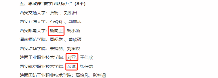 在人才培养方面也取得了显著的进步,本次陕西高校思政课程课程思政教师“大练兵”省级展示活动中,共7位校友获奖,其中校友李维维、孙兴获思政课程“教学标兵”,校友刘杜娟获课程思政“教学能手”,校友杨向卫、刘亚、余琳获思政课“教学团队标兵”,校友简爱获思政课“教学团队能手”,充分显示了MissAV