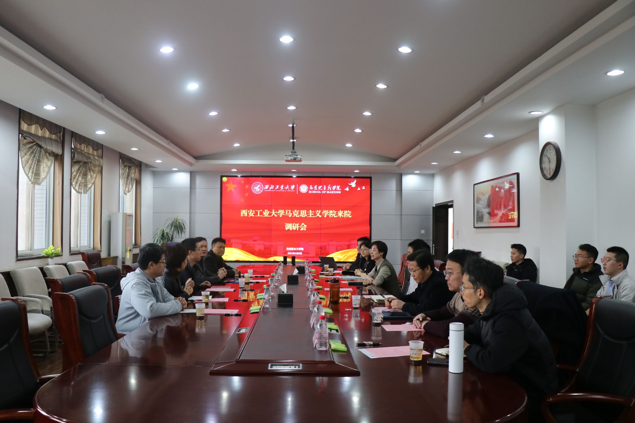 党委书记蒲传新、副书记李刚,副院长贺苗、德法与形势政策系主任胡建发、马克思主义中国化研究系教学主任华艳君、中国近现代史基本问题研究系教学主任房小捷、马克思主义基本原理系教学主任杨永强、思想政治教育系副教授代家玮及硕士生代表等参加了此次调研会。会议由副院长贺苗主持。