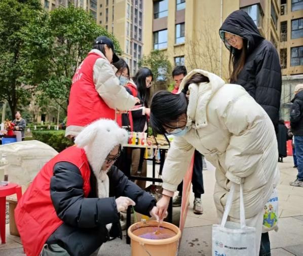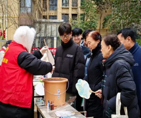 活动伊始,志愿者以漆扇和剪纸为载体,向社区居民生动讲述了这两项非遗技艺的历史渊源、艺术特色和文化价值。漆扇制作工艺传承千年,是中国传统非遗文化中不可或缺的瑰宝;剪纸艺术扎根民间,以红纸为媒,剪刀为笔,既承载着祈福纳祥的美好寓意,也凝聚着劳动人民的智慧结晶。随后,志愿者们现场展示了漆扇的制作过程,从选材的严苛、涂漆的技巧到绘图的创意、装饰的精致,每一个细节都彰显着非遗文化的独特魅力。社区居民们目不转睛,赞叹于传统技艺的精妙,在志愿者的帮助下亲自体验漆扇制作,感受其蕴含的深厚文化底蕴。剪纸环节将活动推向高潮。志愿者们手持剪刀,在红纸上灵巧穿梭,一幅幅栩栩如生的剪纸作品呈现在眼前,既有传统的花鸟鱼虫,也有现代的抽象图案,让人叹为观止。居民们被这些精美的剪纸作品深深吸引,纷纷向志愿者请教剪纸的技巧和方法。在志愿者的悉心指导下,他们手执剪刀,在红纸上勾勒对生活的热爱。每一把漆扇、每一张剪纸,传达着居民们对美好生活的期许,加深了邻里温情,彰显了非遗文化的当代生命力。活动现场氛围热烈而欢快,欢声笑语不断。