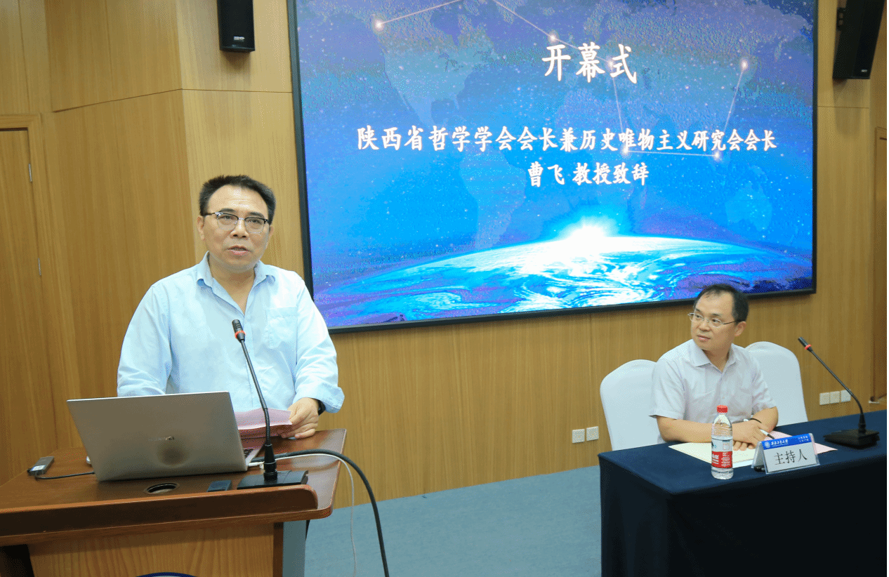 的支持表示衷心感谢,希望与会人员以此为契机,加强学术交流、密切学术联系,共同促进我省哲学社会科学的繁荣与发展。曹飞教授代表历史唯物主义研究会对与会学者表示热烈欢迎,指出“新质生产力与唯物史观的当代发展”会议主题深化了马克思的唯物史观,前瞻了中国特色社会主义事业,为社会进步与人的全面发展奠定了理论基础。