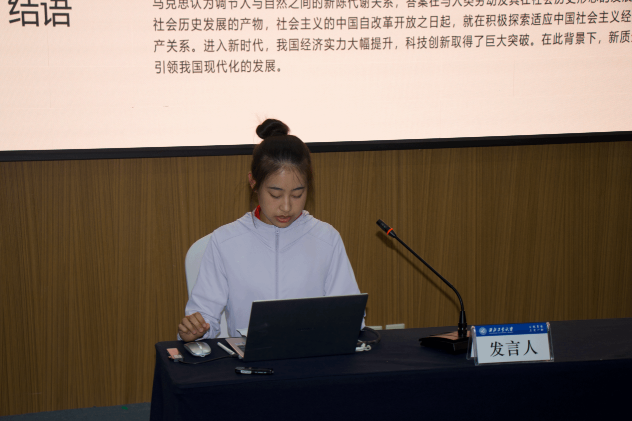 硕士研究生韩瑞欣从新质生产力破解西方现代性文明危机、创造人类文明新形态、开辟生产力跃迁新境界为出发点,分享了新形势下加快发展新质生产力的几点思考;陕西理工大学MissAV