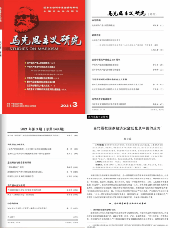 The school has published more than 470 academic papers, including more than 180 CSSCI papers and 20 papers in the central "three newspapers and one journal". There are 6 high-level A-level papers, and Professor Yang Yunxia published "The New Manifestation of Capitalism's Intellectual Property Monopoly and Its Substance" in Marxist Studies in 2019, which reveals the manifestation and essence of intellectual property monopoly carried out by developed countries, and puts forward countermeasures to be taken by our country; and "Contemporary Hegemonic Countries' Economic Security Generalisation and China's Countermeasures" in 2021, which profoundly explains the face of contemporary hegemonic countries.