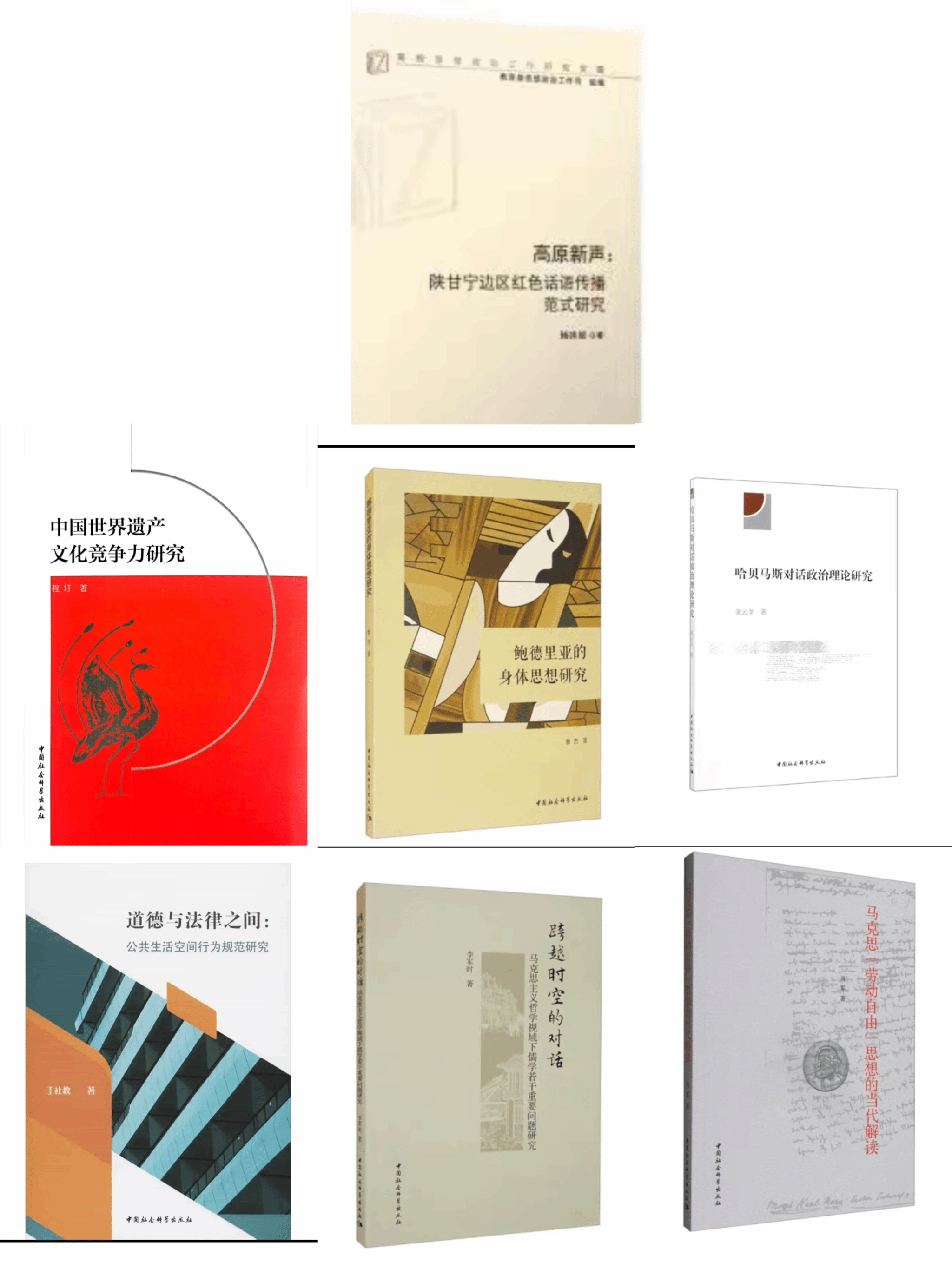 Professor Cheng Wei's Research on 'the Cultural Competitiveness of China's World Heritage', Professor Lu Jie's Research on 'Baudrillard's Thought on the Body', Professor Zhang Yunlong's Research on 'Habermas's Theory of Dialogic Politics', Professor Ding Shejiao's 'Between Morality and Law: Research on Behavioral Norms in Public Living Space', Associate Professor Li Junshi's 'Dialogues Across Space and Time- -A Study of Some Important Issues of Confucianism in the Context of Marxist Philosophy, Lecturer Ma Jun‘s A Contemporary Interpretation of Marx's Thought on "Freedom of Labour" etc. were published by China Social Science Press, which apply the worldview and methodology of Xi Jinping's Thought on Socialism with Chinese Characteristics in the New Era to enrich and develop the theory revealed by the Marxist theory, and together they have written a new chapter of Marxism for the times.
